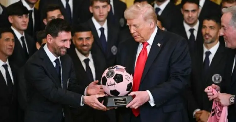 প্রথমবার হোয়াইট হাউজে মেসি, ট্রাম্পকে দিলেন উপহার