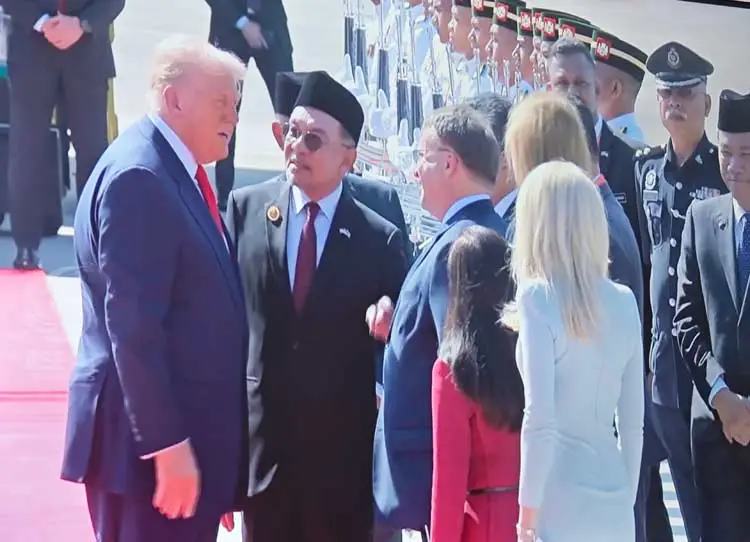 সকাল ১০টার দিকে প্রেসিডেন্টের বিশেষ বিমান এয়ার ফোর্স ওয়ান নেমে আসে কুয়ালালামপুর আন্তর্জাতিক বিমানবন্দরের বুংগা রায়া কমপ্লেক্সে। রানওয়েতে ট্রাম্পকে স্বাগত জানান মালয়েশিয়ার প্রধানমন্ত্রী দাতুক সেরি আনোয়ার ইব্রাহিম এবং তার স্ত্রী দাতুক সেরি ড. ওয়ান আজিজাহ ওয়ান ইসমাইল।
