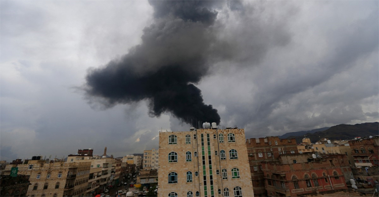 আল জাজিরার যাচাইকৃত একটি ফুটেজে দেখা গেছে, ইসরায়েলি হামলার পর রাজধানী সানার আকাশে আগুন এবং ধোঁয়ার কুণ্ডলী উঠতে দেখা গেছে।