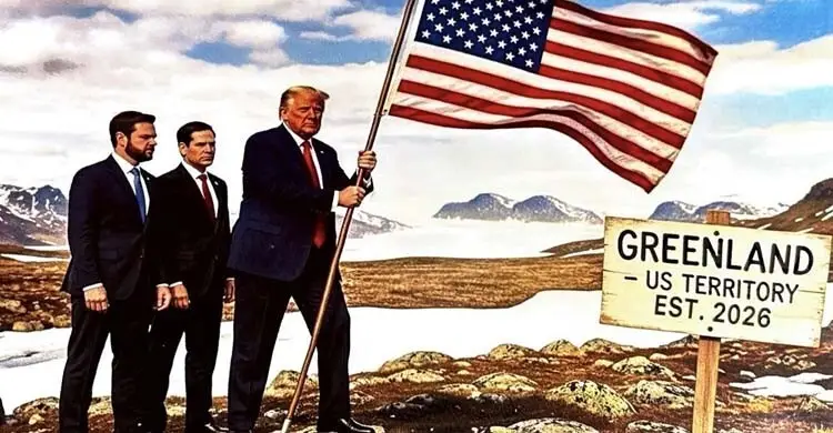 আরেকটি পোস্টে ট্রাম্পকে ভাইস প্রেসিডেন্ট জেডি ভ্যান্স এবং পররাষ্ট্রমন্ত্রী মার্কো রুবিওর সঙ্গে গ্রিনল্যান্ডে যুক্তরাষ্ট্রের পতাকা উত্তোলন করতে দেখা যায়। ছবির এক পাশে একটি ফলকে লেখা রয়েছে-গ্রিনল্যান্ড, যুক্তরাষ্ট্রের ভূখণ্ড,স্থাপিত ২০২৬।