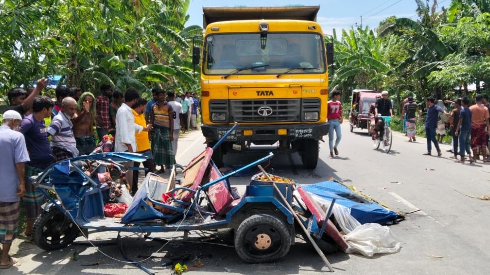 স্থানীয়রা জানান, ভূরুঙ্গামারী থেকে ছেড়ে আসা একটি ড্রাম ট্রাক সোনাহাট স্থলবন্দরের দিকে যাচ্ছিল। ট্রাকটি বঙ্গ সোনাহাট ইউনিয়নের ঘুন্টিঘর এলাকায় পৌঁছলে বিপরীত দিক থেকে আসা একটি যাত্রীবাহী অটোরিকশাকে চাপা দেয়। এতে ঘটনাস্থলে চালক বাহার উদ্দিনের মৃত্যু হয়। পরে স্থানীয়রা রক্তাক্ত ৪ জনকে উদ্ধার করে ভূরুঙ্গামারী উপজেলা স্বাস্থ্য কমপ্লেক্সে নিয়ে যায়। সেখানে আতিকার মৃত্যু হয়। এ ঘটনায় স্থানীয়রা ঘাতক ট্রাকটিকে আটক করলেও চালক পালিয়ে গেছে।