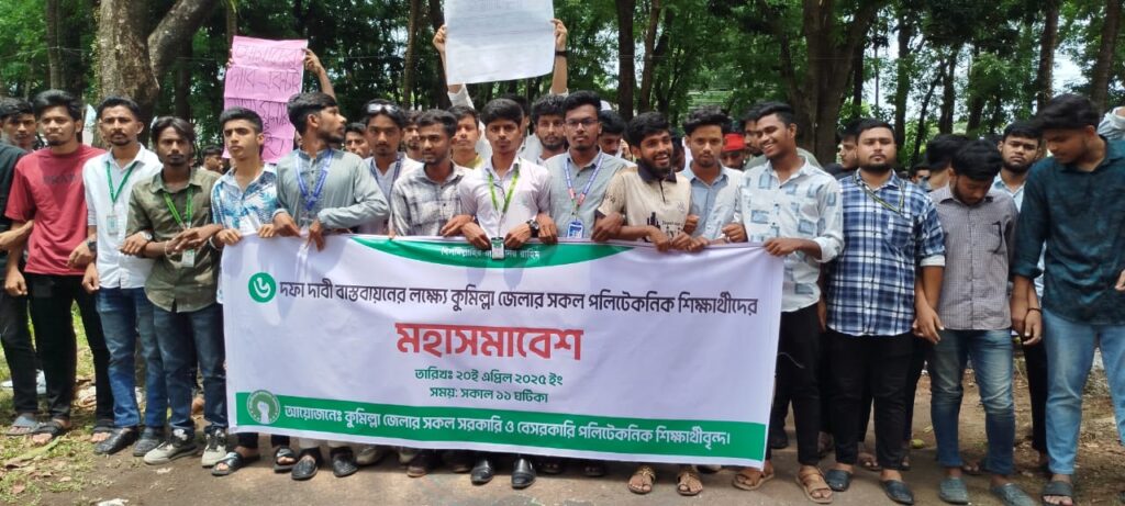 কুমিল্লা পলিটেকনিকে ছয় দফা দাবী বাস্তবায়নে সমাবেশ ও বিক্ষোভ মিছিল
