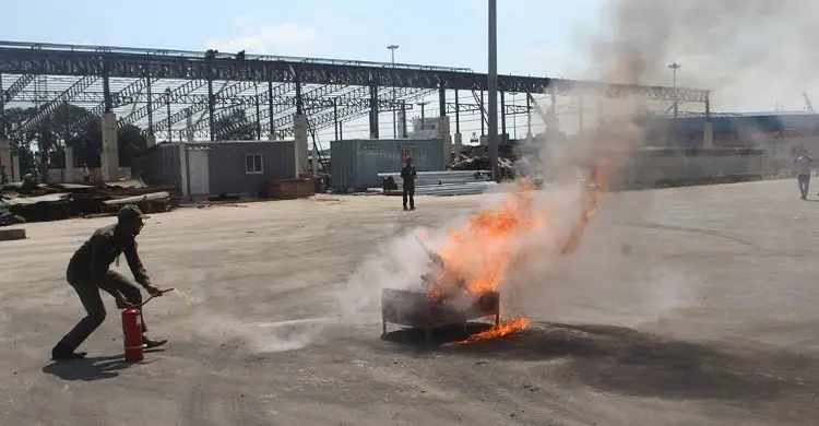 মহড়ার প্রথম পর্যায়ে খোলা আগুন থেকে রাসায়নিকবাহী একটি কনটেইনারে অগ্নিকাণ্ডের অনুকল্পে ফায়ার ইউনিটগুলো দ্রুত পানি ও ফোম প্রয়োগের মাধ্যমে আগুন নিয়ন্ত্রণে আনে।