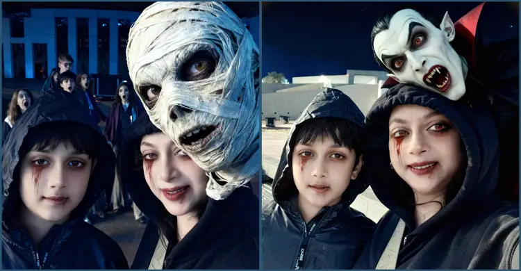 ছবিগুলোতে দেখা যায়, ভূতের সাজে মেতে উঠেছেন শাবনূর ও তার ছেলে। কেউ মমির সাজে, কেউ আবার জম্বির রূপে হাজির হয়েছেন। ভৌতিক সাজসজ্জার মধ্যেও হাসিখুশি মেজাজে উৎসব উপভোগ করেছেন তারা।