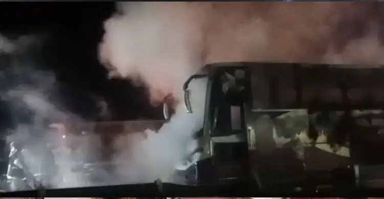 ঢাকা-টাঙ্গাইল মহাসড়কে চলন্ত বাসে আগুন
