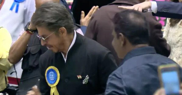 শাহরুখের সামনে যে প্লেসকার্ড রাখা ছিল সেখানে বড় করে লেখা, ‘শ্রী শাহরুখ খান’। এই দৃশ্য শুধু অভিনেতার জন্য নয়, পুরো দর্শক মহলের জন্যই আবেগঘন একটি মুহূর্ত। দীর্ঘ ক্যারিয়ারে এই প্রথম জাতীয় পুরস্কারে সম্মানিত হলেন তিনি।