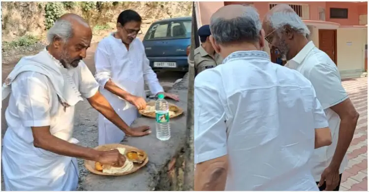 সেখানে ফুটপাতে লাঞ্চ করে ভাইরাল সুপারস্টার রজনীকান্ত। কয়েকজন সফরসঙ্গীর সঙ্গে রাস্তার ধারে ফুটপাতে সাধারণ খাবার দিয়ে দুপুরের লাঞ্চ উপভোগ করতে দেখা গেছে এই তারকাকে। সেই ছবি সোশ্যাল মিডিয়ায় আসতেই ভাইরাল হয়েছে। সবসময়ই স্টারডমের বাইরে গিয়ে সাধারণ জীবন উপভোগ করতে ভালোবাসেন রজনীকান্ত। আবারও সেই প্রমাণই মিললো।