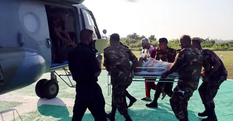 মাইন বিস্ফোরণে আহত বিজিবি সদস্যকে হেলিকপ্টারে আনা হলো ঢাকায়