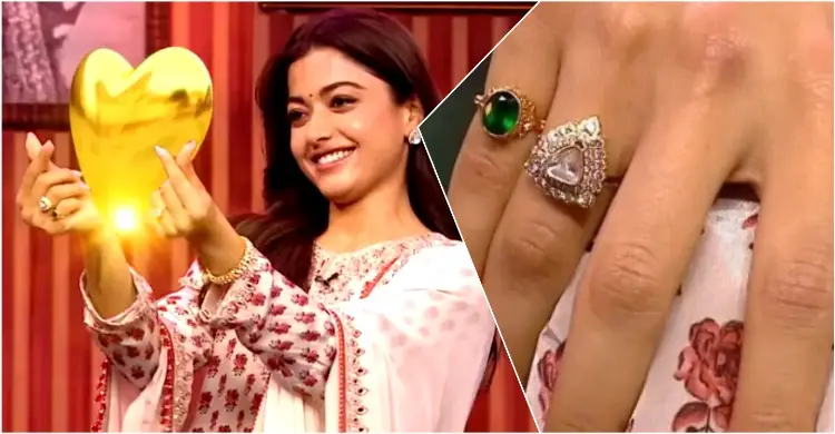 সম্প্রতি জগপতি বাবুর জি৫ টক শো-এ হাজির হন রাশমিকা। সেখানে তিনি তার আসন্ন ছবি ‘দ্য গার্লফ্রেন্ড’-এর প্রচার করেন। তবে অনলাইনে ভাইরাল হওয়া প্রোমোতে সবার দৃষ্টি কেড়ে নেয় অভিনেত্রীর অনামিকার হীরার আংটি।