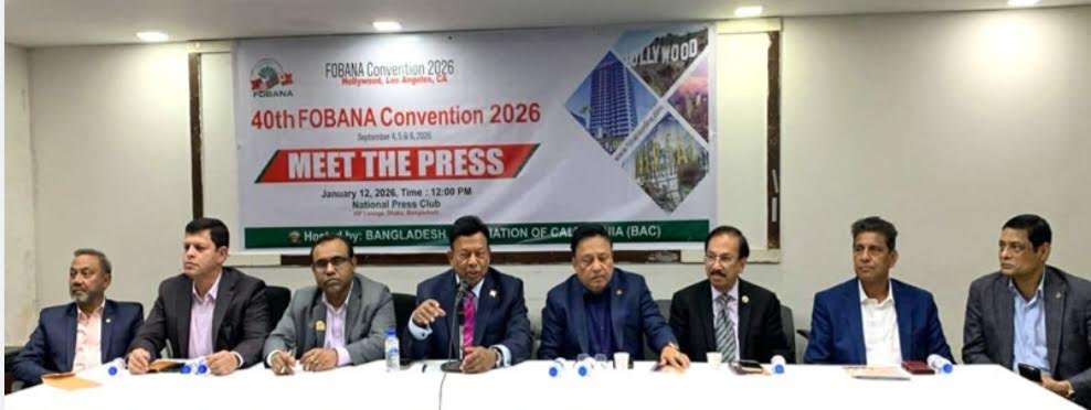 উত্তর আমেরিকায় বাংলাদেশিদের বৃহত্তম সংগঠন ফেডারেশন অব বাংলাদেশি অ্যাসোসিয়েশনস ইন নর্থ আমেরিকা (ফোবানা)-এর ৪০তম সম্মেলনের প্রস্তুতি ও সার্বিক বিষয় নিয়ে ঢাকা জাতীয় প্রেস ক্লাবে এক সংবাদ সম্মেলন অনুষ্ঠিত হয়েছে। সোমবার (১২ জানুয়ারি) বিকেল ৪ টায় জহুর হলে অনুষ্ঠিত সংবাদ সম্মলনে নির্বাহী কমিটি ও স্বাগতিক কমিটির নেতারা ৪০তম সম্মেলনের বিভিন্ন বিষয় নিয়ে উপস্থিত গণমাধ্যমকর্মীদের সঙ্গে আলোচনা করেন।
