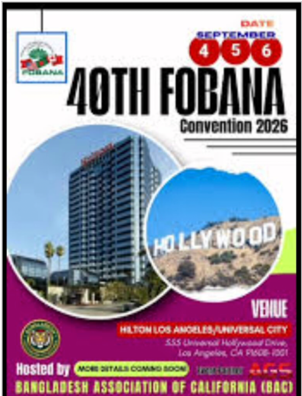 ২০২৬ সালের লেবার ডে উইকেন্ডে ৪ থেকে ৬ সেপ্টেম্বর ক্যালিফোর্নিয়ার লস অ্যাঞ্জেলেসের ইউনিভার্সাল হিলটন হোটেলে অনুষ্ঠিত হবে ৪০তম ফোবানা সম্মেলন। এবারের সম্মেলনের আয়োজক সংগঠন বাংলাদেশ অ্যাসোসিয়েশন অব ক্যালিফোর্নিয়া (বাক)। আয়োজক সংগঠন এবং ফোবানা এক্সিকিউটিভ কমিটি সম্মেলনকে সফল করার লক্ষ্যে ইতিমধ্যেই প্রাথমিক কাজ শুরু করেছেন। অনেক গুলো সাব কমিটি গঠন করা হয়েছে। লস এনজেলস ফোবানায় প্রবাসীরা আনন্দ খুজে পাবেন।